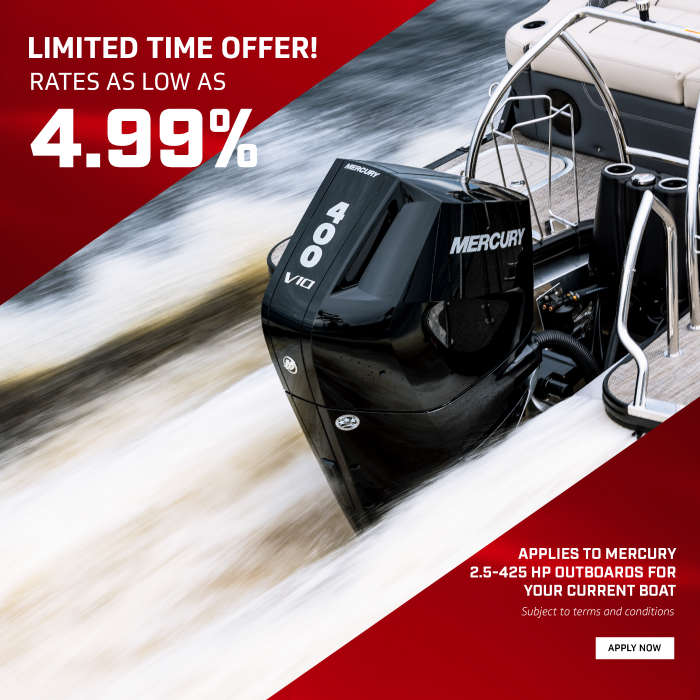 Financing as low as 4.99% interest rate (6.31% APR) on a New Mercury Outboard